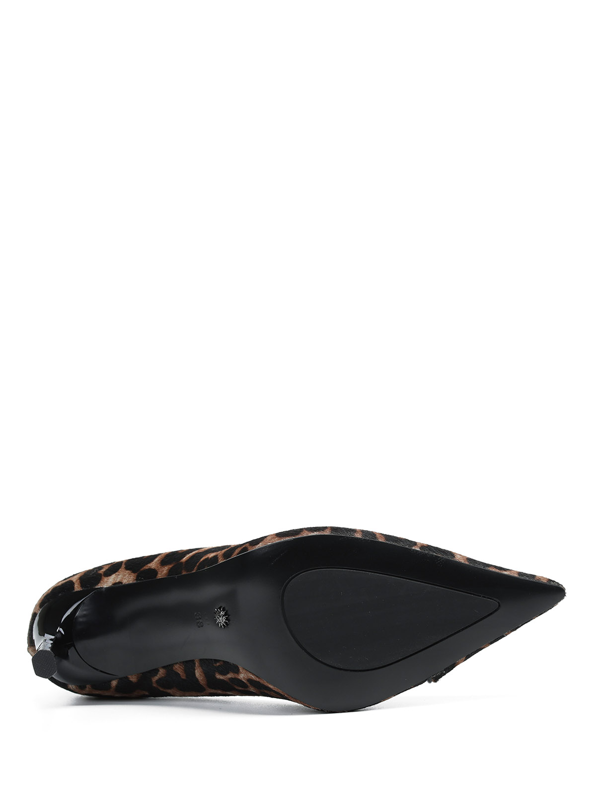 Туфли лодочки выполнены из натуральной кожи с отделкой из меха пони, который придает большую выразительность леопардовому принту. Устойчивая шпилька с легким блеском. Стилизуйте пару с монохромными нарядами, как это делают модные блогеры инфлюенсеры, это подчеркнет вашу индивидуальность и добавить выразительности Вашему образу.